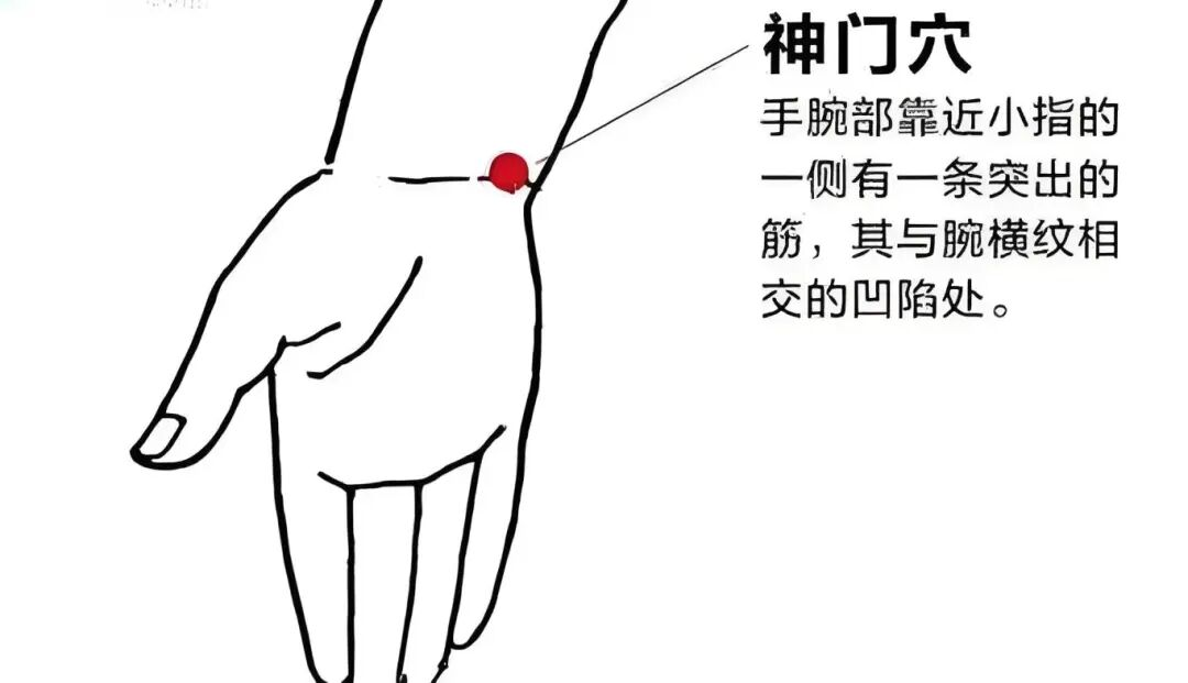 Massage Method: Use the pads of your index and middle fingers to press and knead the Shenmen point 50 times daily before sleep.
